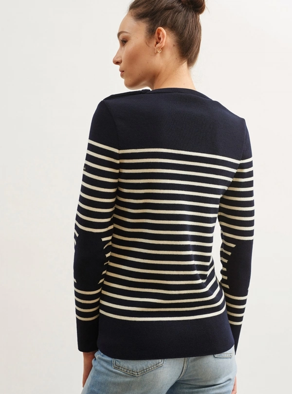 The Bregancon R sweater perfectly embodies Saint James' chic marine spirit, combining tradition and modernity for a timeless look.