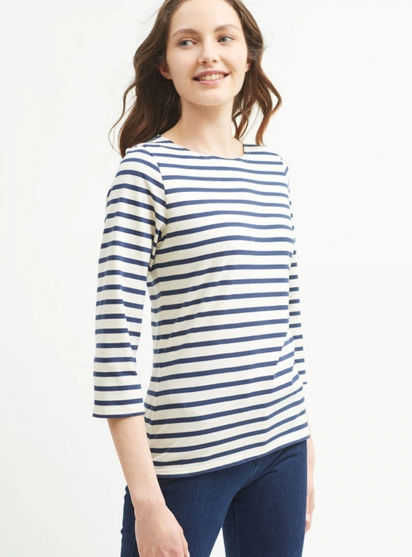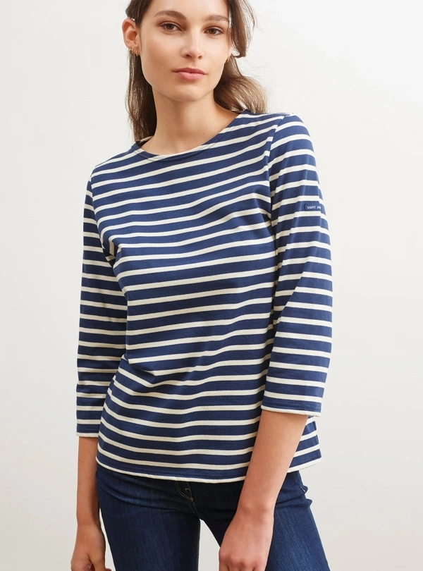 This women's marinière stands out with its 3/4 sleeves and round neckline, offering a flattering fitted silhouette. Made from lightweight cotton jersey, it combines the comfort and breathability of the brand's iconic models like the Minquiers and Minquidame.