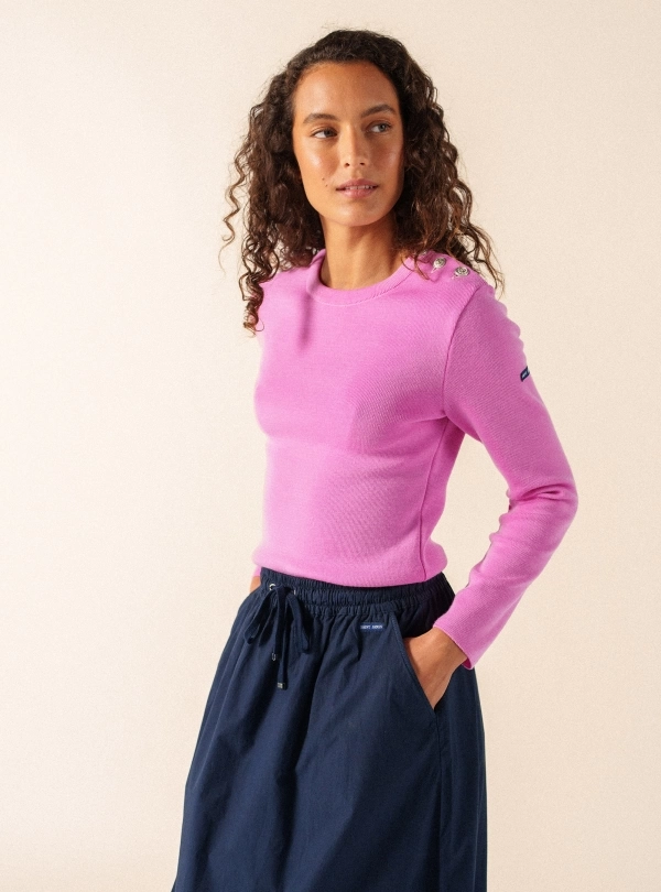 Inspired by traditional nautical wear, the Maree II U sweater embodies the refined heritage of Saint James. With its clean lines, re-stitched crew neckline, slim fit and signature shoulder buttons, it enhances the figure while keeping a timeless and wearable look.